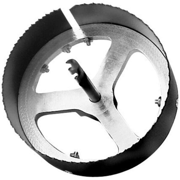 Designed for cutting all types of hard and soft wood, and other non-ferrous materials including plywood, composition board and siding. The Malco VENT SAW is indispensable when fitting fresh air intakes through foundation plates, exterior siding or facing materials encountered in residential or light commercial installations of gas or oil fired furnaces. VENT SAW features easily replaceable alloy steel blades and a versatile one piece cast aluminum arbor/mandrel combination with a 7/16" (11.1 mm) pilot drill. The webbed mandrel allows easy plug removal and a built-in arbor eliminates the need for separate arbor attachments.