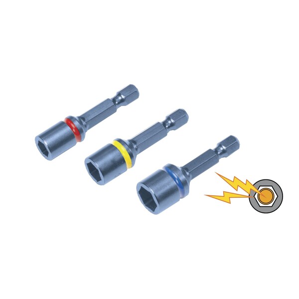Combo kit containing 1 of each MSH14IS, MSH516IS, MSH38IS. Includes 4 impact-grade nut drivers. 1- each of the following MSH14IS, MSH516IS, MSH38IS. 1- Of each 1/4 hex shank in 2-inch length, 5/16 hex shank in 2-inch length & 3/8 hex shank in 2-inch length. Resists impact driver stress. Unbreakable floating magnet.