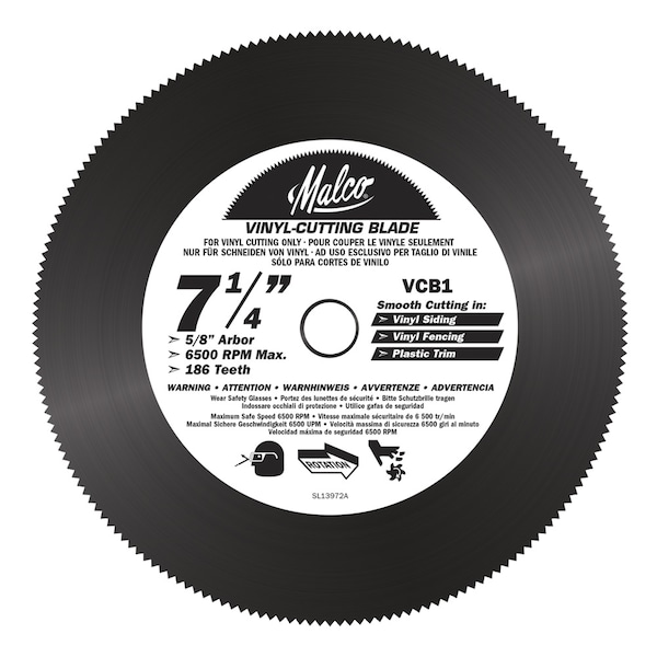 Malco's versatile 7-1/4 inch (184 mm) circular saw blade is a must have for portable circular saws. A popular blade choice when you need to go where the work is. Why settle for a make-do plywood blade when you can have the real thing in a flat-ground 186 tooth blade that offers smooth cutting in a range of vinyl plastics including vinyl fencing, siding and trim profiles.