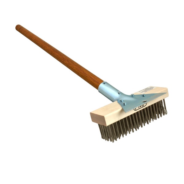 Material: Wood Handle | Stainless Steel Scraper & Bristles ;Length: 27" Handle | 686 Mm Handle ;Width: 7 1/4" Block | 184 Mm Block ;Height: 1 1/4" Round Wire Bristles | 32 Mm Round Wire;Bristles ;Depth: 2 1/4" | 57 Mm
