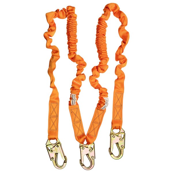 Malta Dynamics 4.5' - 6' Double Leg Stretch Internal Shock Absorbing Lanyard is specifically designed to help reduce the hazards of tripping or catching on nearby machinery found on many of today's industrial and construction sites. This lanyard is ideal for work in tight spaces and around machinery, and is designed to stretch from 4.5 feet when at rest, out to 6 feet when needed.