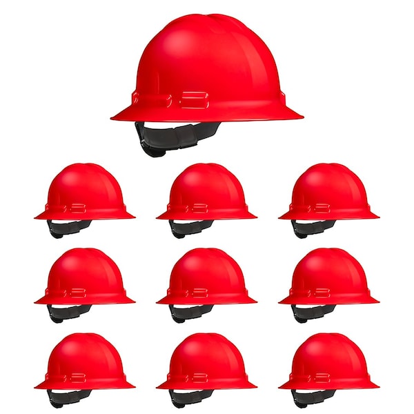 Full Brim Hard Hat, Polyethylene, 4 Point Ratchet, Type 1, Class E and G, Red
