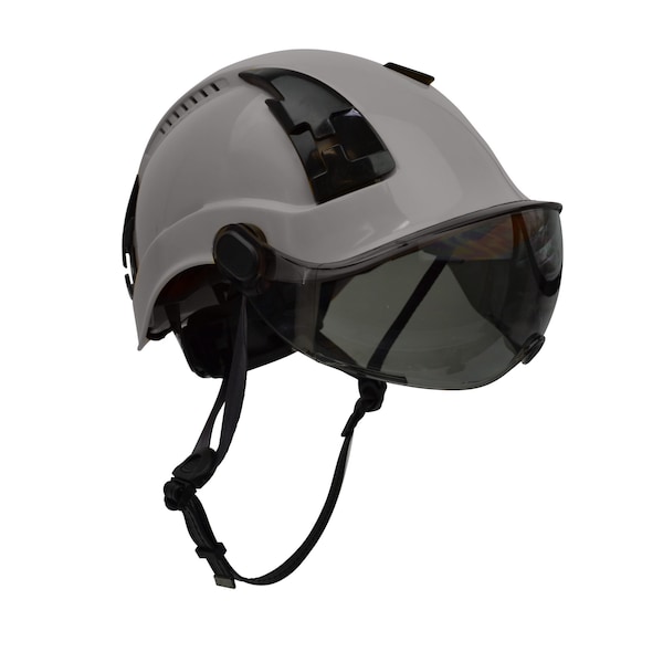 Safety Helmet w/Tinted Visor, Acrylonitrile Butadiene Styrene (ABS), Ratchet, Grey