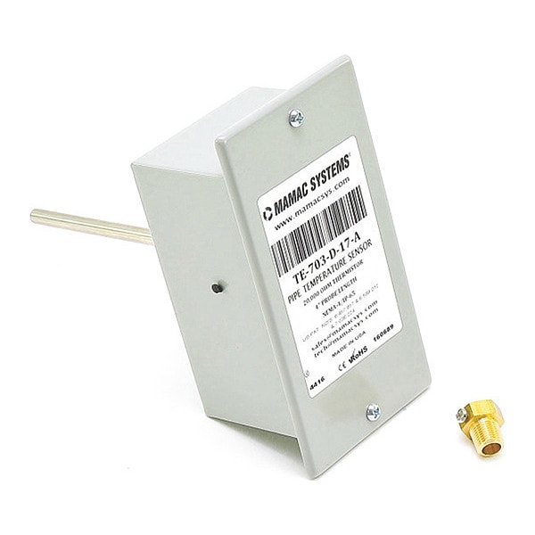 Sensor, Housing Material Steel, Probe Length 1/4 in, Electrical Connection Type Hardwired, Product Type Temperature Sensor, Overall Depth 5 in, Overall Height 2 in, Overall Width 2 1/2 in, Application HVAC