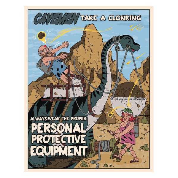 Safety Poster, Caveman PPE, Paper, 16 in W, 12 in H (Discontinued)