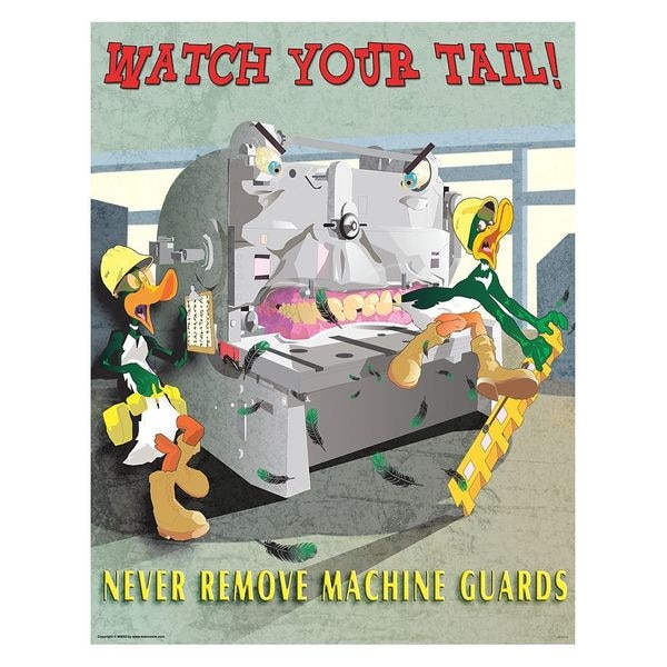 Safety Poster, Machine Guards, Paper, 27 in W, 21 in H