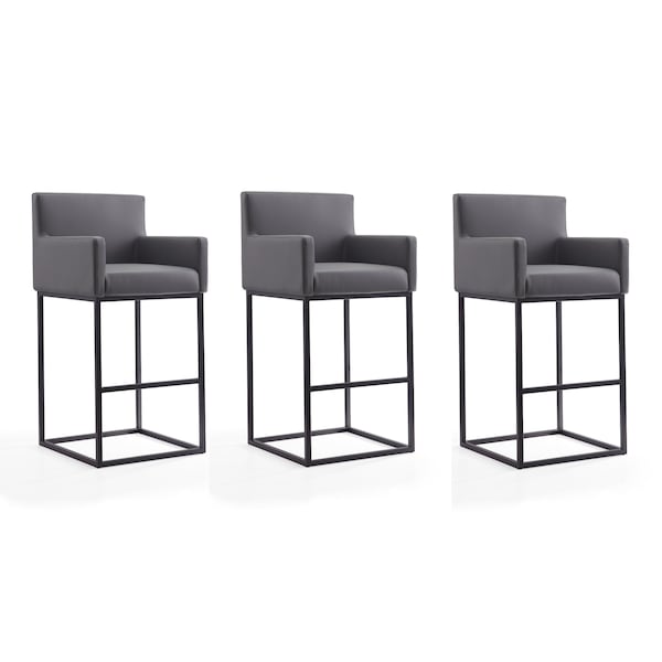 An eye-catching modern profile with a touch of glam. Genuine Leather wraps the cleverly shaped arms, back, and gently cushioned seat, resting on sturdy, slender metal legs. A footrest runs along the front of the stool, providing added comfort to this chic piece.