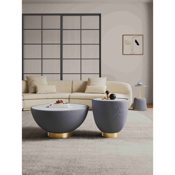 Introducing our striking Modern Anderson Coffee Table and End Table set, a versatile addition to your living and dining spaces. Crafted with artistic flair, it features unique leatherette pleating and beautiful gold metal finishes that adds a touch of stunning design to your home decor. Built with a high-quality steel frame and feet, this table effortlessly combines style and durability. Pair it with our other Manhattan Comfort End Tables to create a cohesive and stylish look, making your living and dining areas stand out.