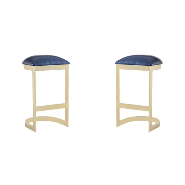 Aura Bar Stool in Blue and Polished Brass (Set of 2)