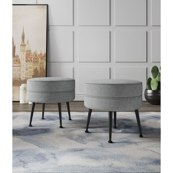 Bailey Ottoman in Grey with Black Feet, 2PK