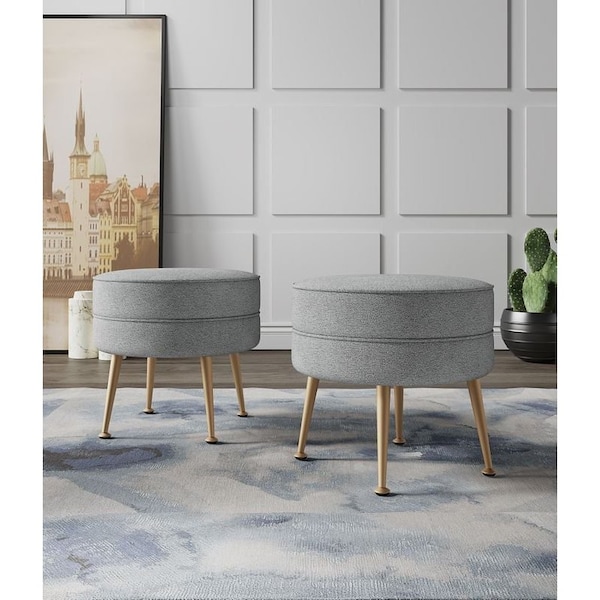 Bailey Ottoman in Grey with Gold Feet, 2PK