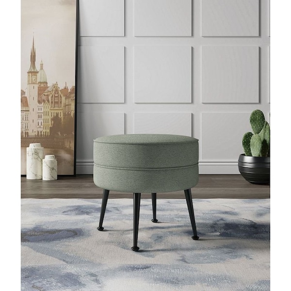 Bailey Ottoman in Sage Green with Black Feet