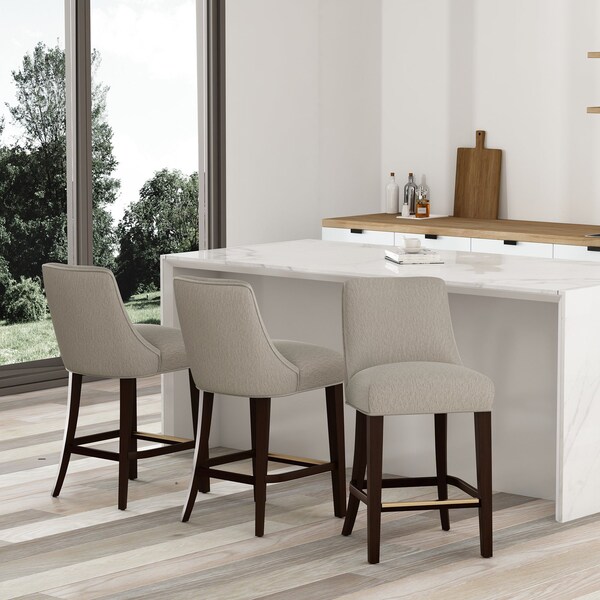 Simple sophistication meets everyday comfort in this versatile bar and counter stool. Wrapped in plush chenille upholstery, its gently curved silhouette and tapered rubberwood legs evoke understated elegance with a mid-century modern edge. Whether you're sipping your morning coffee or hosting evening cocktails, the supportive foam seat and sturdy footrest promise style and stability. Finished in a rich dark walnut, this stool adds warmth and refinement to any space-bringing a polished presence to your kitchen or bar area.