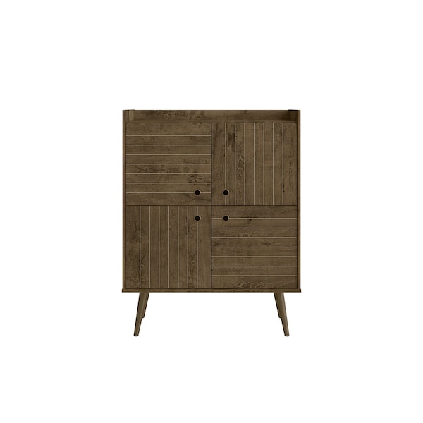 Mid-Century Modern Accent Cabinet for Home Office and Living Room Use. * Upon Assembly, Measures: 35.43 in. Length, 45.5 in. Height, 14.17 in. Depth. * Includes 4 Concealed Compartments. Horizontal and Vertical Door Design Indentation. * 90 deg Open Door Style with Ring Handles and Soft Close Features * Multi Color with Nature Tray Top Design Adding Design and Sophistication to this Product. * Fashionable Splayed Legs made from Solid Wood for Extra Durability. * Perfect for Storage or Display Items. * Home Assembly Required. All Hardware Included.
