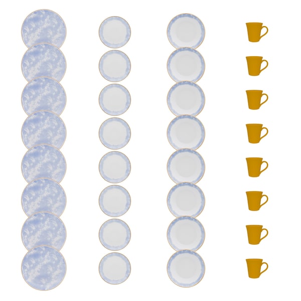 Coup 32 Piece Dinner Set, Service for 8 in Blue and Yellow