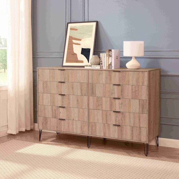 10 Full Extension Drawers Designed in Vertical Textured Ribbed Lines.