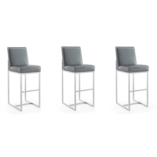 Element 29 Faux Leather Bar Stool in Graphite and Polished Chrome, PK3
