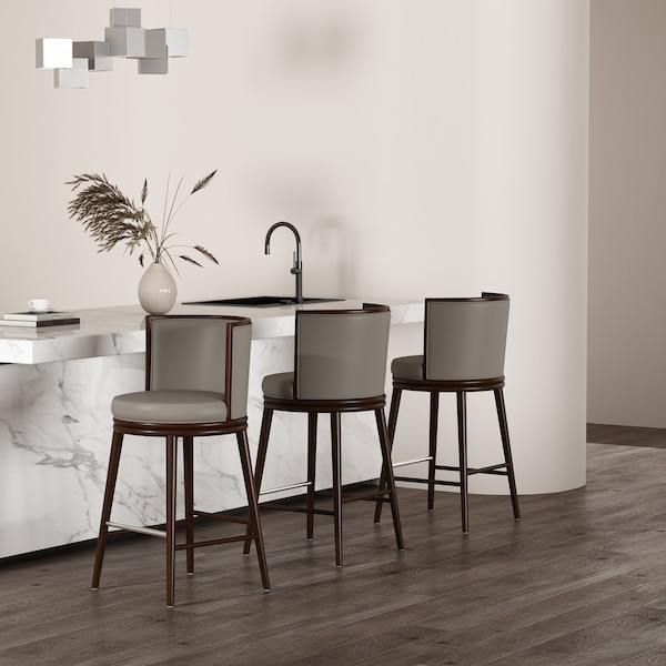 Elevate your home with the timeless elegance of these exquisitely crafted bar and counter stools. Designed with sophistication and comfort in mind, each stool features a sturdy beech wood frame, plush foam cushioning, and sumptuous upholstery that invites you to relax in style. A sleek metal footrest adds a touch of luxury, making this stool a seamless blend of form and function. Whether adorning a modern kitchen island or a chic home bar, these stools bring warmth, refinement, and a statement of contemporary elegance to any space.