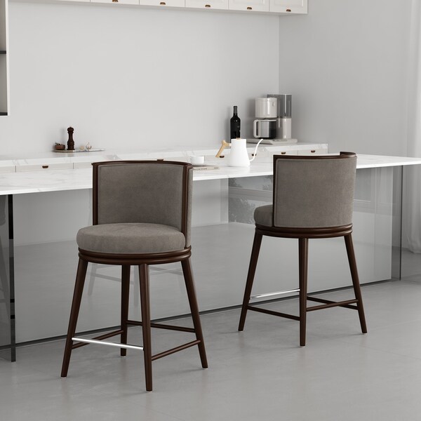 Elevate your home with the timeless elegance of these exquisitely crafted bar and counter stools. Designed with sophistication and comfort in mind, each stool features a sturdy beech wood frame, plush foam cushioning, and sumptuous upholstery that invites you to relax in style. A sleek metal footrest adds a touch of luxury, making this stool a seamless blend of form and function. Whether adorning a modern kitchen island or a chic home bar, these stools bring warmth, refinement, and a statement of contemporary elegance to any space.