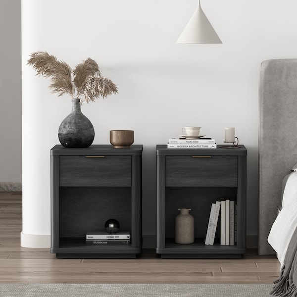 Evelyn Nightstand in Charcoal Grey - Set of 2