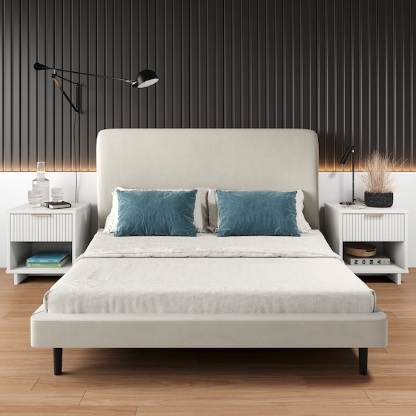Modern-Contemporary with a taste of Glam - Nightstand for Bedroom and Living Room Use. Set of 2. * Upon Assembly, Measures: 18.11 in. Length, 19.68 in Height, 15.35 in. Depth. * Includes 1 Full Extension Drawer with Top Drawer Designed in Vertical Textured Ribbed Lines Made from Solid Wood. * Horizontal Glam Drawer Handles Made of Steel with a Gold Finish. * Featuring 25mm of Board Thickness Made of High Quality MDF and Solid Wood Ribbed Drawer Front. * Open Contemporary Mop Base Side Legs. Adding Seamless Fashion Design and Durability. * Perfect for Bedside Storage, Lamps or Display Items. * Home Assembly Required. All Hardware Included.