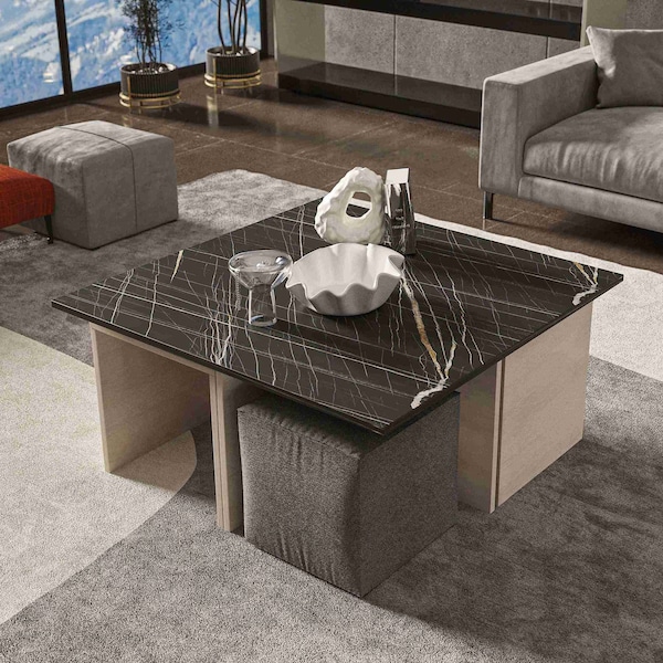 - •Modern Coffee Table with Nested Ottomans for Living Room Use.