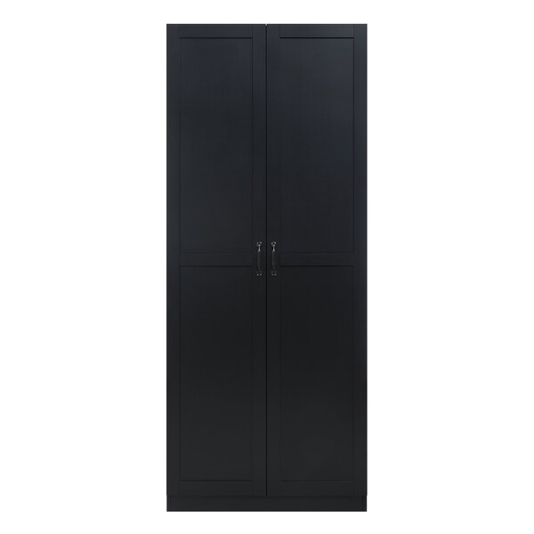 Modern Free Standing 1 Sectional Wardrobe Closet with Storage Compartments for Bedroom and Storage Use. * Upon Assembly, Measures: 29.6 in. Length, 71.1 in. Height, 16.18 in. Depth. * Vertical Rectangular Geometric Door Design with Black Metal Pull Handles. * Includes 7 Large Cubby Compartments. * 90 deg Open Door Style with European Soft Close Door Hinge. * Mop Base with Non-marking Felt Foot Pads. * Ample Storage in a Stylish and Space-Saving Design. Option to Add on Collection Units to Create a Wider Wardrobe. * Home Assembly Required. All Hardware Included.