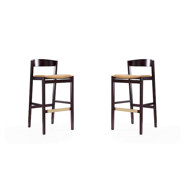 Klismos Barstool in Camel and Dark Walnut (Set of 2)