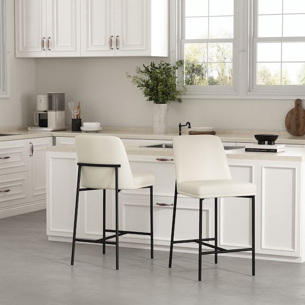 Loft Metal Vegan Leather Counter Stool in Ivory - Set of 2