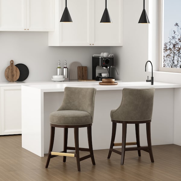 Elevate your everyday seating with a stool that blends tailored elegance and thoughtful comfort. Wrapped in richly textured chenille, this stool invites you in with a curved backrest, offering both style and support. The generously cushioned seat and the dark walnut wood frame grounds the piece with a timeless warmth. A gleaming gold footrest adds a refined touch, making this stool a perfect companion for your everyday.