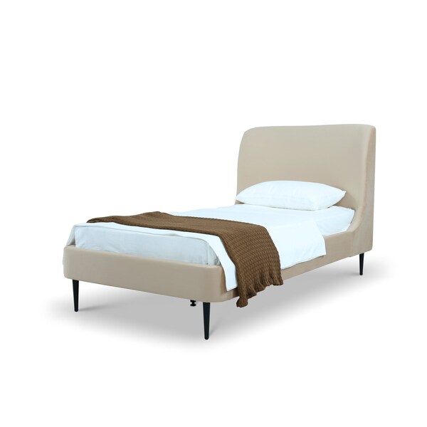 Mid-Century Modern Bedframe with Headboard for Bedroom Use. * Upon Assembly, Measures: 43.5 in. Length, 44.7 in. Height, 83.9 in. Depth. * Upholstered In Luxurious Velvet with High Density Foam Filled Padding. * Features a Beautifully Curved Headboard Design. * Recommended Mattress Size: 75 inches * 38 inches. * Metal Leg Height: 7.7". Headboard Height: 30" * No Box Spring Needed, Slats Included. * Home Assembly Required. All Hardware Included