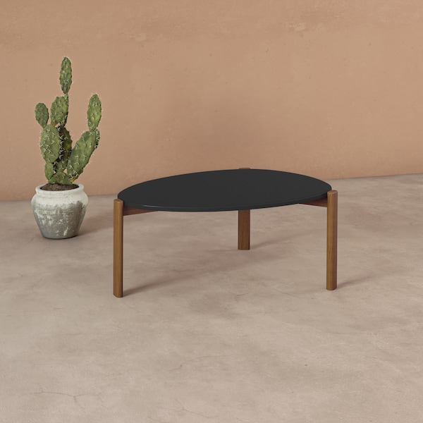 Mid-Century Modern Gales Coffee Table with Solid Wood Legs in Matte Black