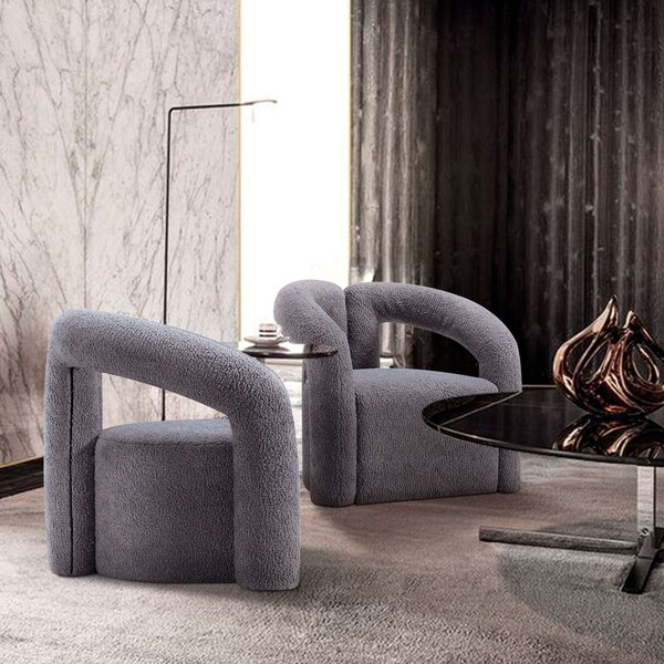 Modern Darian Boucle Accent Chair in Grey, 2PK