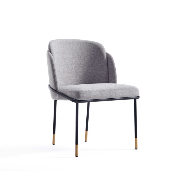 Modern Dining Chair Perfect for Dining and Home Office Use. * Measures: 22.83 in. Length, 31.89 in. Height, 22.44 in. Depth. * Upholstered in Beautiful Soft Fabric with High Density Foam Filled Padding. * Seat Structured in Modern Base Made of Metal for Design and Durability. * Front and Back Legs Elegantly Embellished with Elongated Gold Metal Ferrules * Standard 4-Leg Base. * Weight Capacity: 300 Lbs. Seat Height: 18.7" * Delivered to you Fully Assembled! No Assembly Required!