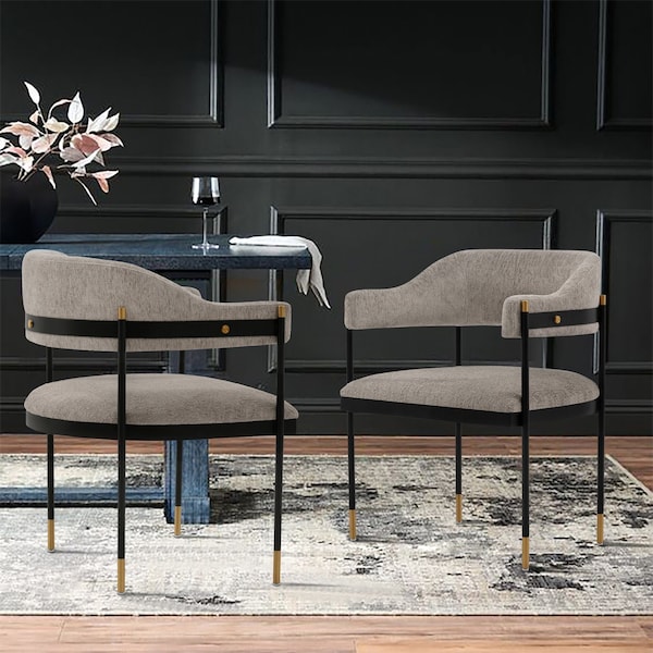 Modern Dining Chair for Dining Room and Task Chair Usage. * Measures: 24.8 in. Length, 31.89 in. Height, 23.23 in. Depth. * Frame Made of High Quality Metal with Brushed Gold Tips for Fashion and Durability. * Upholstered in Luxurious Boucle with High Density Foam Filled Padding. * Stunning Metal Frame with Gold Accents and Floating Back Design. * Inner Seat Depth: 20.47 in. Seat Height: 18.7 in. Inner Seat Width: 23.23 in. * Commercial Grade Tested with Weight Capacity of 330 Lbs. * Delivered to you Fully Assembled! No Assembly Required!