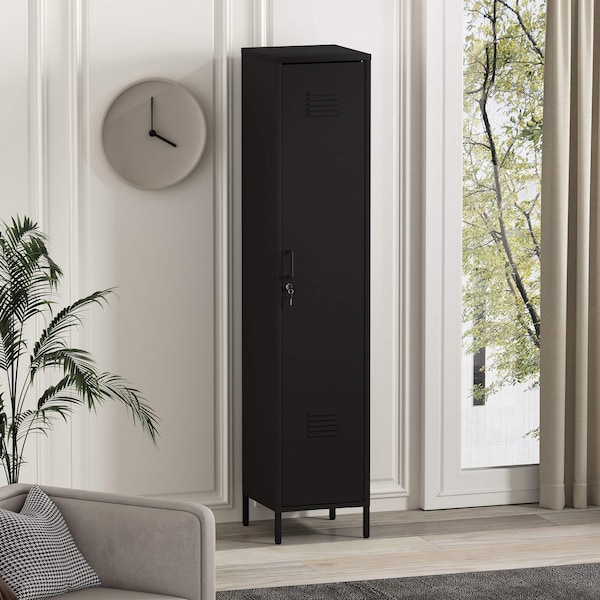 - Modern Single Locker Style Storage Cabinet Perfect for Garage Use.
