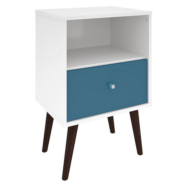 Nightstand,Mid Century,White/Aqua