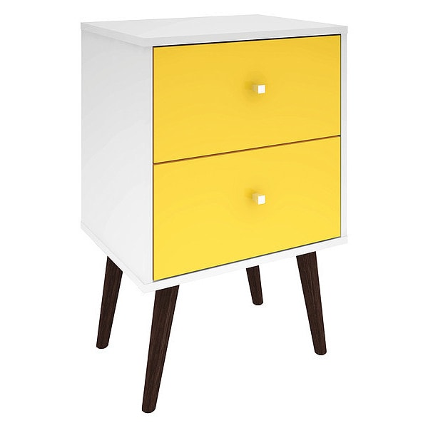 Nightstand,Mid Century,White/Yllw