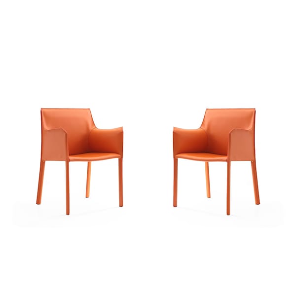 An elegant twist to a classic design. The Lachesis dining chair is a welcoming modern arm chair with a curved shape that makes it particularly comfortable. The chair is entirely covered in leather, offering a sleek well tailored appeal. Cleverly constructed to fit any home's decor from industrial and coastal, to glam and boho chic.