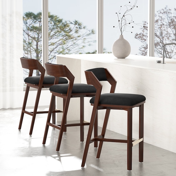 - Modern Barstool with Backrest Perfect for Bar and Kitchen Use. Set of 3.