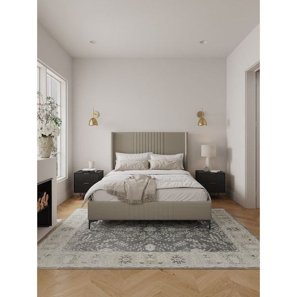 - •Mid-Century Modern Queen Bed Frame with Headboard for Bedroom Use.