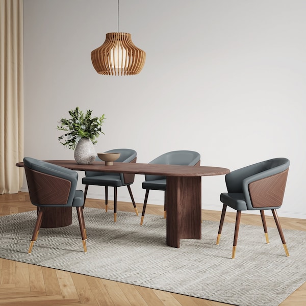Reeva Dining Chair in Leatherette with Beech Wood Back & Solid Wood Legs in Walnut & Graphite Grey