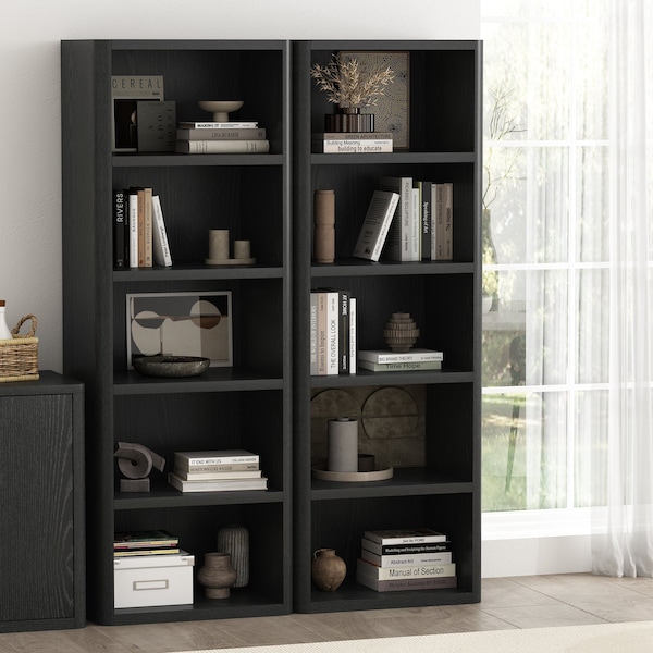 Rivington 28in Open Bookcase in Black - Set of 2