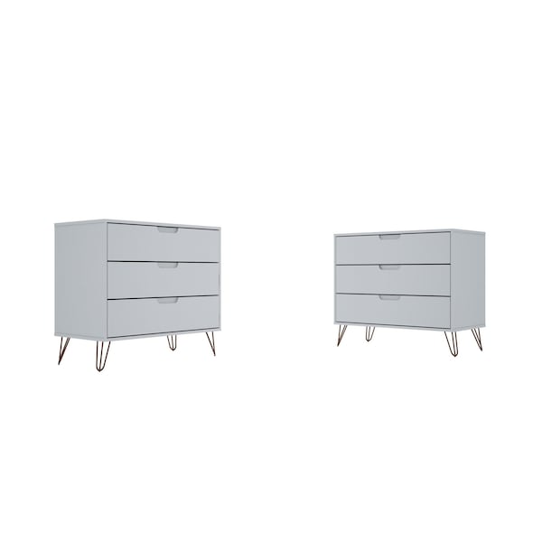 The Rockefeller dresser is the perfect accompaniment to any bedroom space, with ample storage and minimalistic Mid-century modern style. Cutout handles keep the piece feeling fresh with three drawers made easy for stowing away clothing, personal items, and beyond. A display top allows for sharing favorite framed family photos, travel trinkets, perfume trays, or a decorative lamp. Set it under a mirror or painting to complete your space with this instant bedroom focal point.