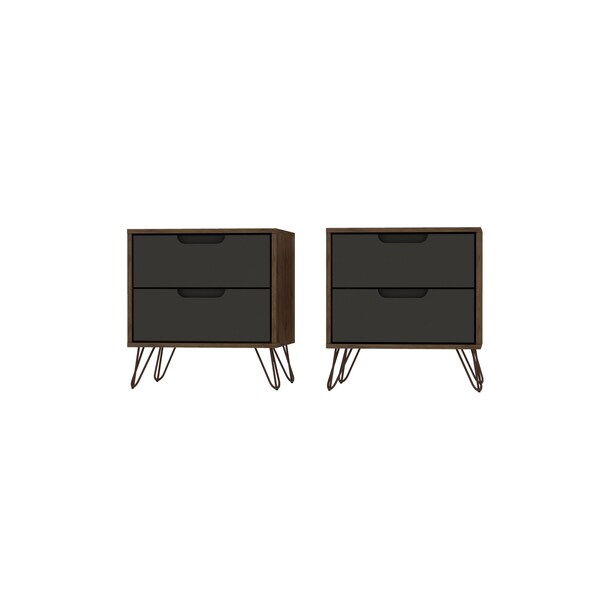 The Rockefeller nightstand is the perfect bedside table, with two drawers that are ideal for tucking away personal items, tablets, books, and beyond. Versatile in design with Mid-Century clean lines and modern splayed metal legs, this piece blends well with any existing decor and can be used from space to space.
