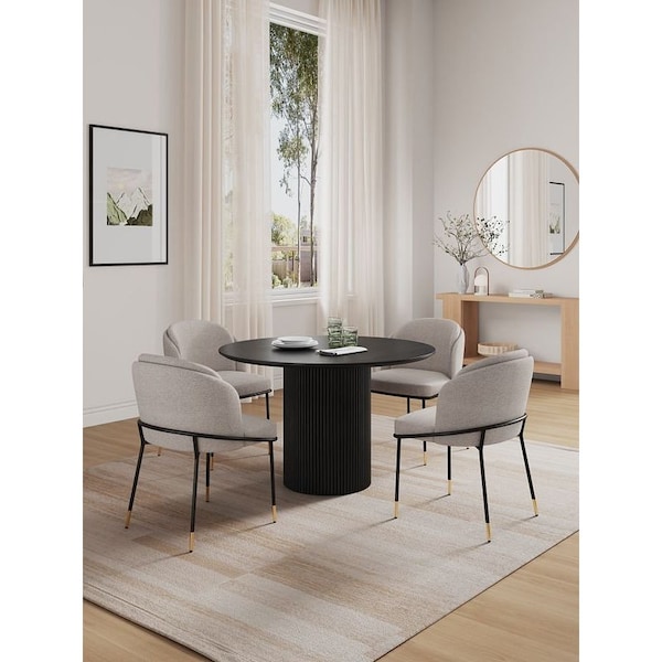 Round Dining Set of 5, 47.24 in L, American Solid Ash Wood, Black