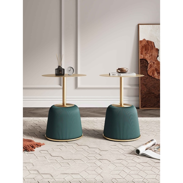 Round End Table, 15.75 in L, Stainless Steel, Green