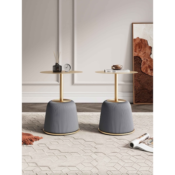 Round End Table, 15.75 in L, Stainless Steel, Grey