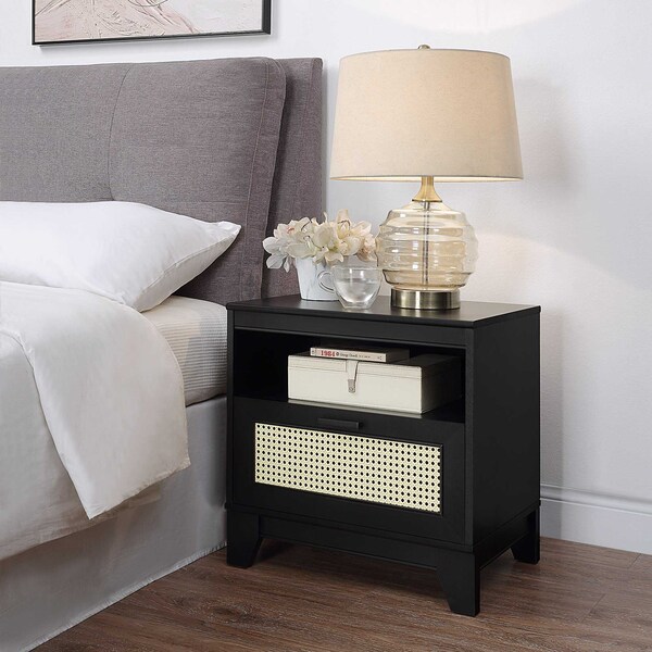 Sheridan Modern Cane Nightstand in Black