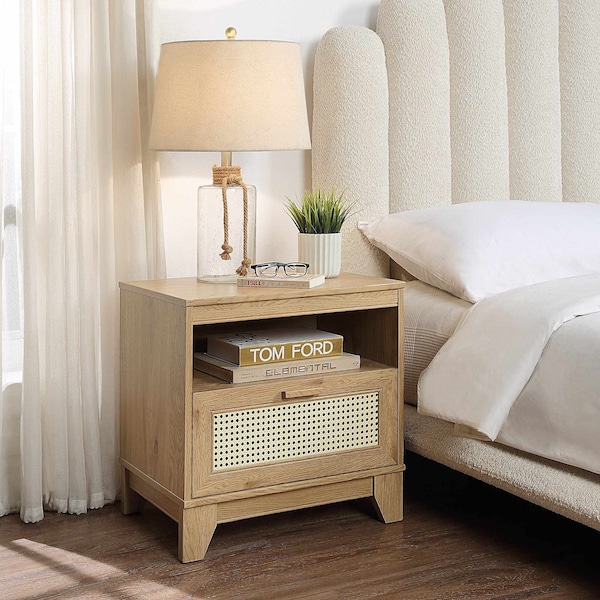 Sheridan Modern Cane Nightstand in Nature